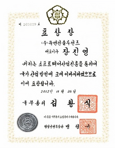 - 정보통신부 주최 공개 소프트웨어 챌린지 은상 수상